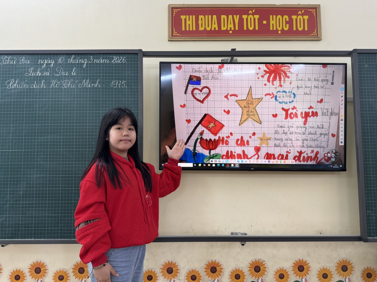 Trong giờ học Lịch sử, các em học sinh lớp 5B trường Tiểu học Thị Trấn Núi Đối thể hiện niềm yêu thích đặc biệt đối với lịch sử dân tộc Việt Nam. Thông qua việc tìm hiểu về Chiến dịch Hồ Chí Minh, các em không chỉ nắm được những mốc thời gian quan trọng mà còn chủ động sáng tạo những sơ đồ, tranh vẽ và bài thuyết trình sinh động. Khi đứng trước lớp giới thiệu sản phẩm học tập của mình, các em thể hiện sự tự tin, hào hứng và niềm tự hào về truyền thống đấu tranh anh dũng của dân tộc. Hoạt động học tập này giúp các em hiểu rằng lịch sử không chỉ là những con số, sự kiện mà còn là câu chuyện về lòng yêu nước, ý chí kiên cường của cha ông. Từ đó, các em thêm yêu lịch sử Việt Nam và nuôi dưỡng ý thức trân trọng, gìn giữ những giá trị lịch sử của đất nước.