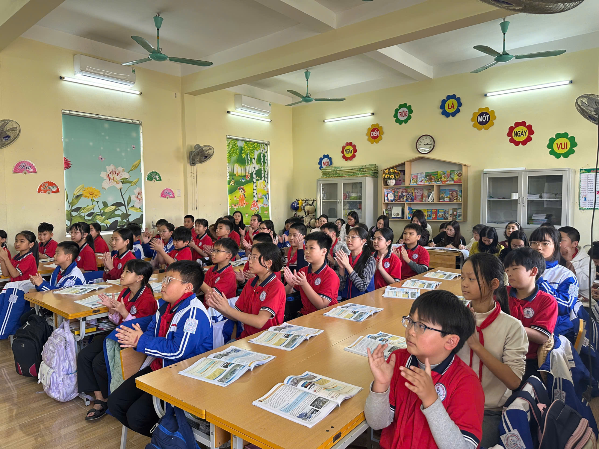 Tiết học được tổ chức sinh động thông qua các hoạt động nhóm, thảo luận, chia sẻ ý kiến và xử lí tình huống gần gũi với đời sống hằng ngày của học sinh. Các em hào hứng tham gia vẽ tranh, viết thông điệp và đề xuất những việc làm cụ thể để giữ gìn cảnh quan nơi ở, trường học và khu dân cư. Qua đó, học sinh hình thành ý thức bảo vệ môi trường, yêu quý và trân trọng cảnh quan địa phương ngay từ những hành động nhỏ.