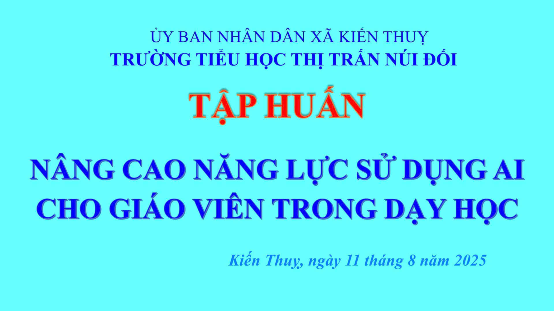 Ngày 11/8/2025, tập thể cán bộ, giáo viên Trường Tiểu học Thị Trấn Núi Đối đã tham dự buổi tập huấn chuyên đề “Nâng cao năng lực sử dụng công nghệ trí tuệ nhân tạo (AI) cho giáo viên trong dạy học”.