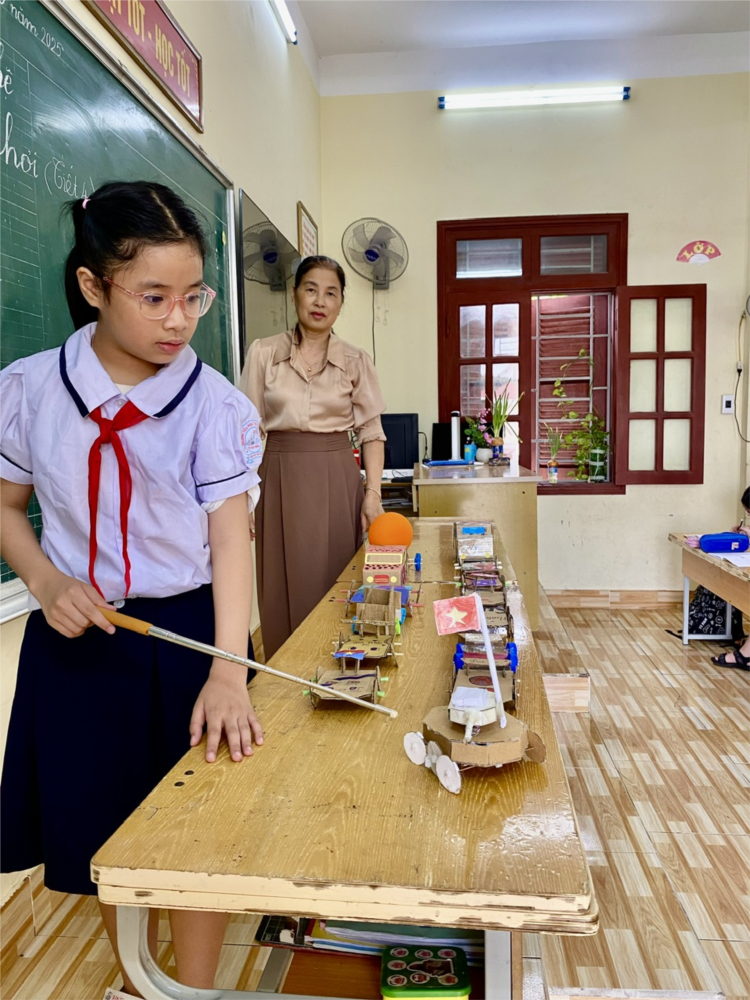 Tiết học không chỉ rèn luyện sự khéo tay và óc sáng tạo, mà còn giúp các em hiểu thêm về việc bảo vệ môi trường thông qua tái chế; lan toả tình yêu quê hương đất nước, niềm tự hào dân tộc qua mỗi sản phẩm. Nhìn những gương mặt rạng rỡ khi hoàn thành sản phẩm, cả cô và trò đều rất vui và tự hào.