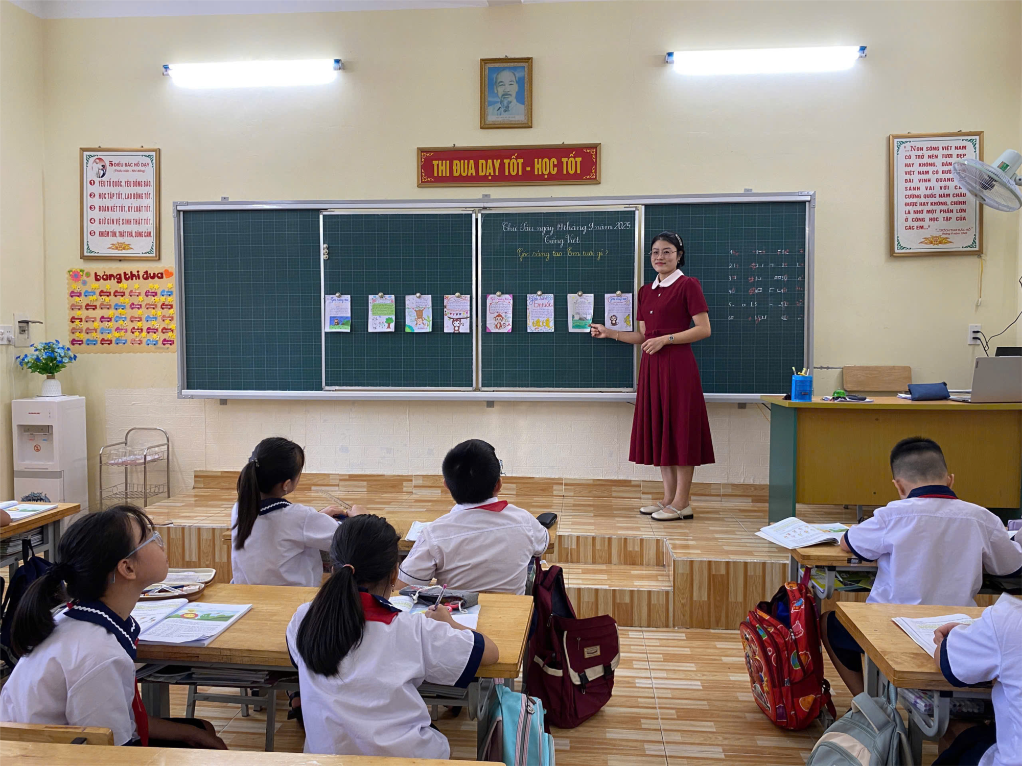 Trong không khí học tập sôi nổi và đầy hứng khởi, các em học sinh lớp 4 đã có một tiết học “Góc sáng tạo” thật thú vị và ý nghĩa. Tiết học diễn ra trong không gian lớp học quen thuộc nhưng lại mang đến một làn gió mới khi các em được thỏa sức thể hiện tư duy, cảm xúc và sự sáng tạo của mình thông qua việc thiết kế, trình bày bài viết bằng hình ảnh, màu sắc và nghệ thuật trang trí.