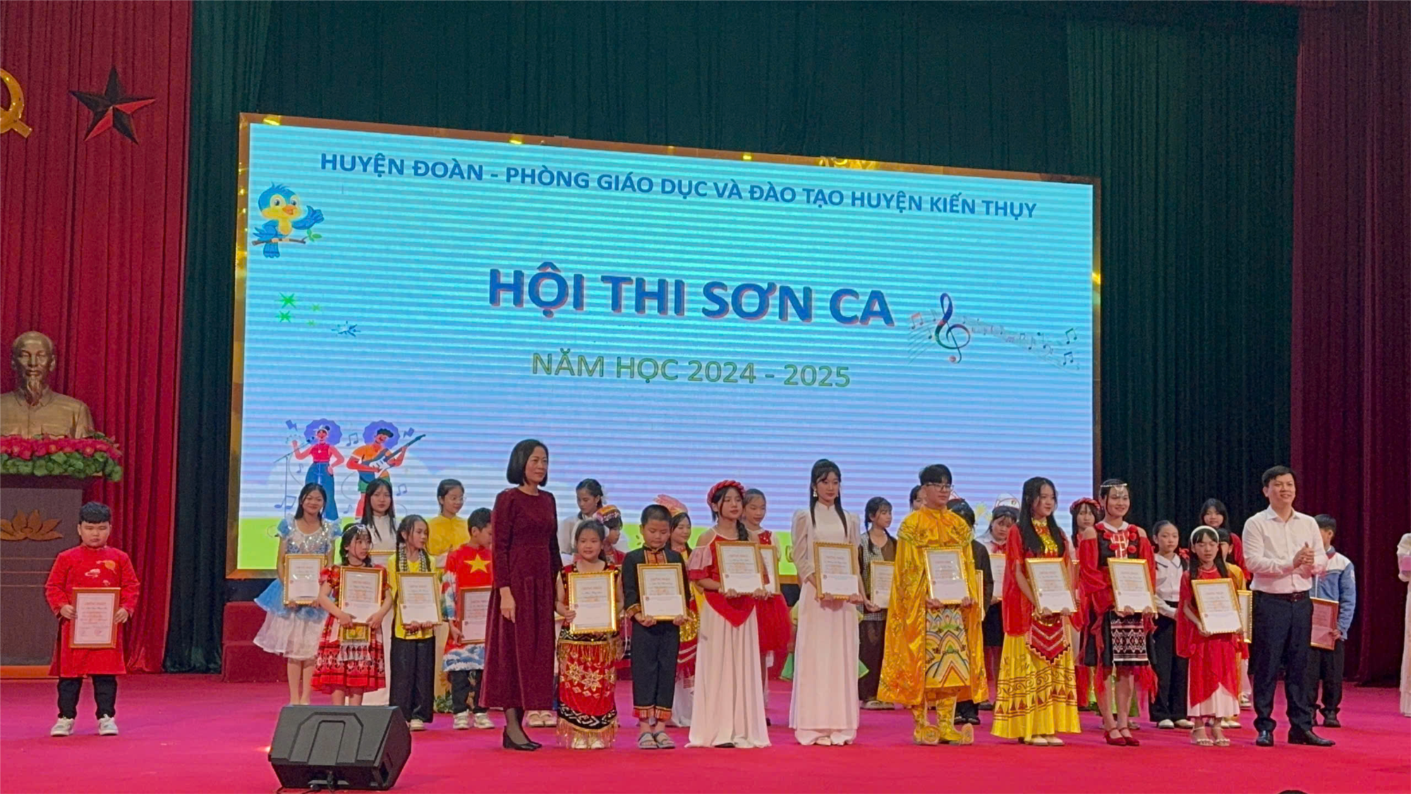 Chiều ngày 11/3/2025, tại Trung tâm Văn hoá - Thông tin và Thể thao huyện Kiến Thuỵ diễn ra Hội thi Sơn ca cấp Huyện do PGD&ĐT phối hợp với Huyện đoàn tổ chức. Hội thi là hoạt động thiết thực chào mừng 94 năm ngày thành lập Đoàn TNCS Hồ Chí Minh; tháng Thanh niên năm 2025 và các ngày lễ lớn của đất nước và Thành phố.