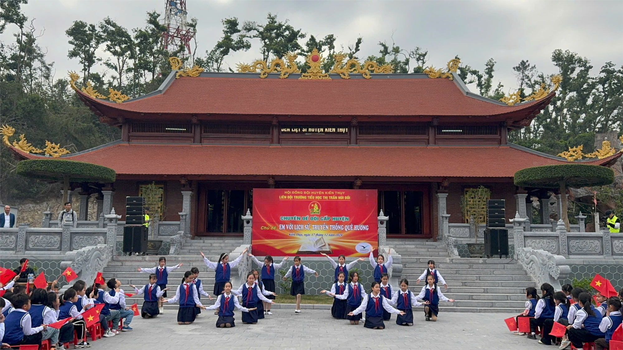 Tại Đền thờ Liệt sĩ các em thực hiện chào cờ, hát quốc ca; dâng hương tưởng niệm các anh hùng liệt sĩ quê hương Kiến Thụy; nghe thuyết minh về những người con ưu tú của quê hương đã anh dũng chiến đấu, hy sinh vì sự nghiệp giải phóng dân tộc, vì độc lập, tự do của Tổ quốc.
