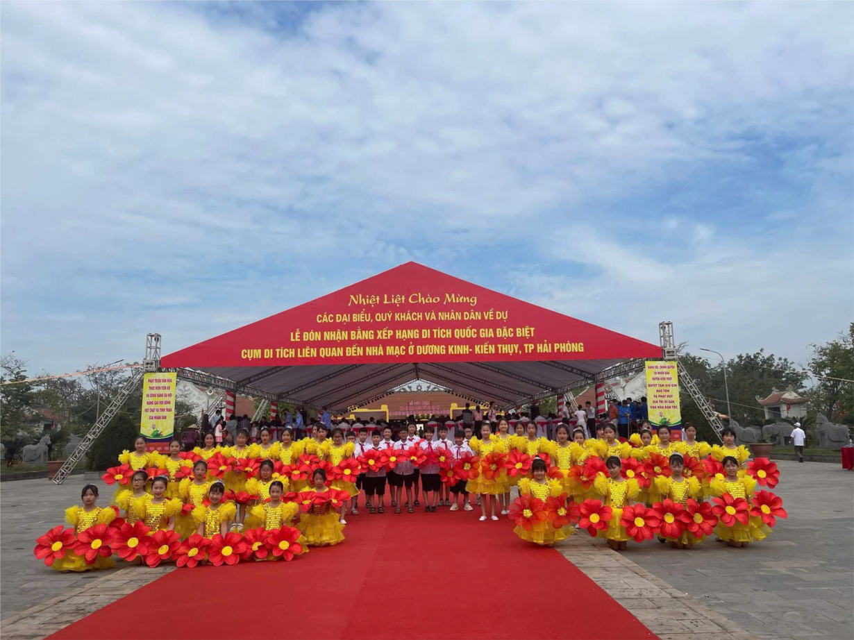 Chùm ảnh HS trường TH Thị Trấn trong Chương trình Văn nghệ chào mừng Đón nhận bằng xếp hạng di tích Quốc gia đặc biệt tại Khu tưởng niệm Vương triều nhà Mạc.