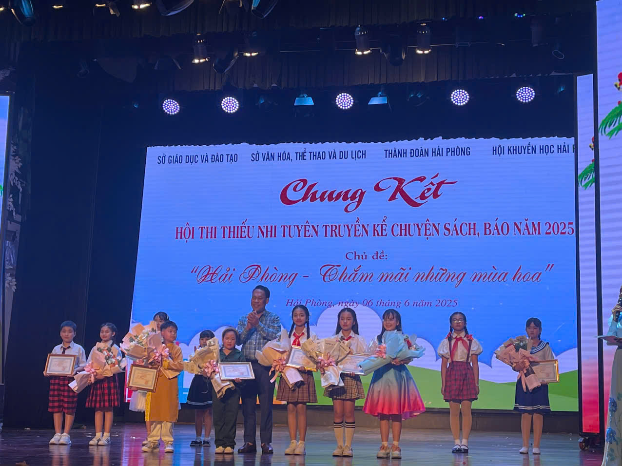Sáng 06/6, em Phạm Thuỳ Lâm đại diện cho thiếu nhi huyện Kiến Thuỵ tham gia Chung kết Hội thi thiếu nhi tuyên truyền kể chuyện sách, báo năm 2025 với chủ đề “Hải Phòng - Thắm mãi những mùa hoa” và vinh dự đạt giải Nhất.