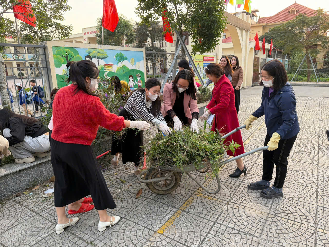 Với tinh thần trách nhiệm và ý thức vì cộng đồng, các thầy cô giáo đã cùng nhau quét dọn, thu gom rác thải, làm sạch cảnh quan khu vực trường học, góp phần xây dựng môi trường xanh – sạch – đẹp, đảm bảo mỹ quan đô thị, tạo không khí khang trang, sạch sẽ đón chào năm mới.
